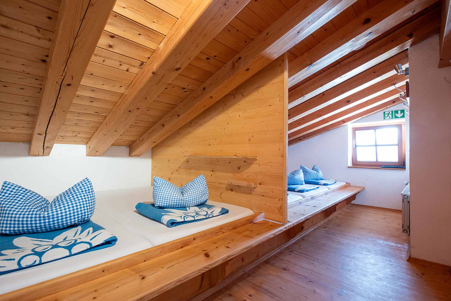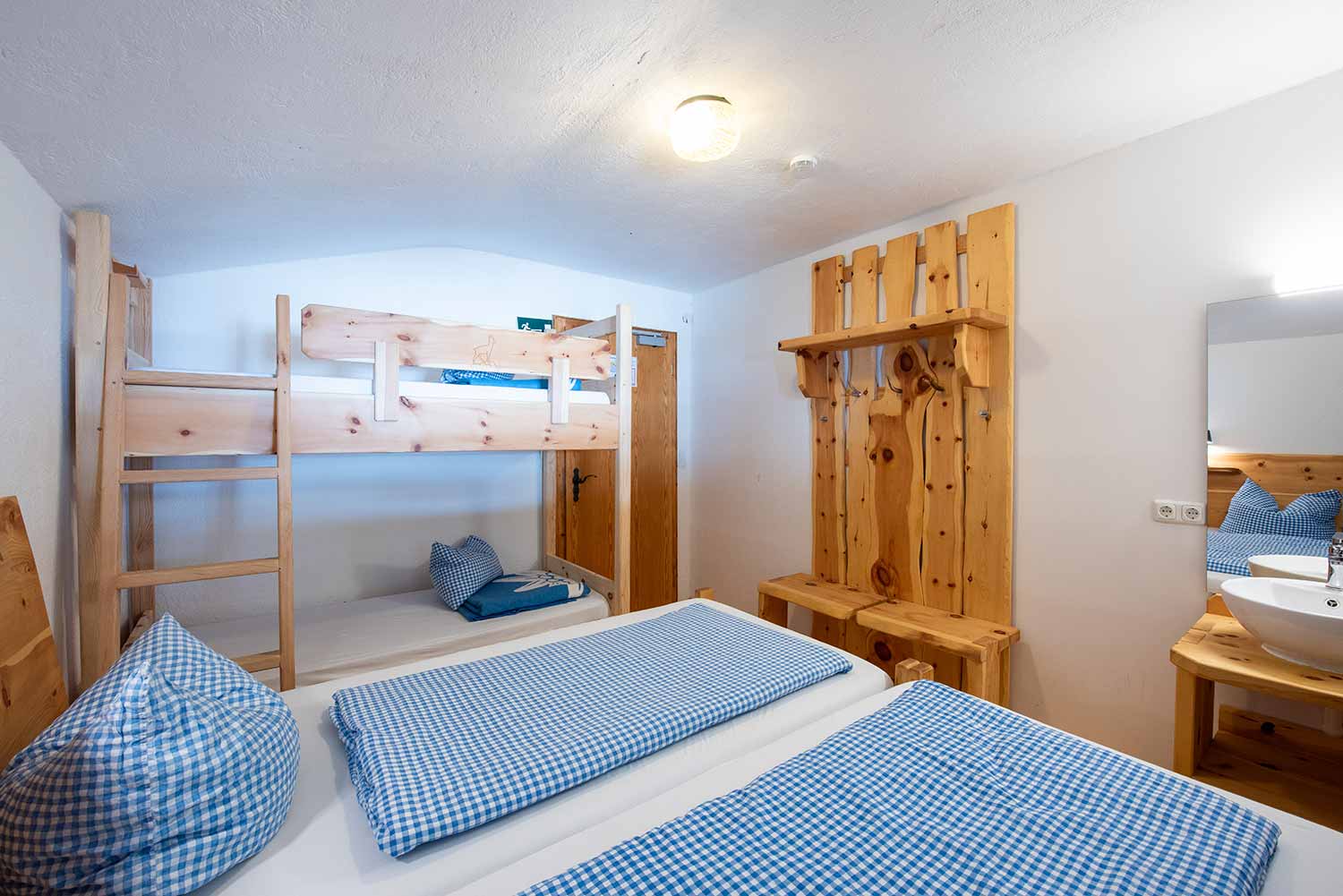 - 1x 4er Zimmer mit Doppelbett und Stockbett (Mehrbettzimmer)